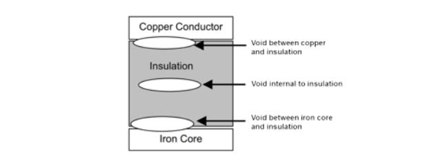 暴露于電場(chǎng)中,當(dāng)電應(yīng)力超過(guò)臨界值時(shí),在絕緣系統(tǒng)的微小空隙中會(huì)發(fā)生瞬時(shí)氣態(tài)電離。這種電離加上足夠高的電應(yīng)力會(huì)產(chǎn)生局部放電。