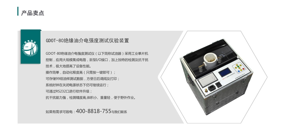 我公司生產(chǎn)的GDOT系列絕緣油介電強(qiáng)度測試儀(以下簡稱試油機(jī))采用工業(yè)單片機(jī)控制,應(yīng)用大規(guī)模集成電路,新型I/O接口,加上獨(dú)特的檢測及抗干擾技術(shù),極大地提高了設(shè)備性能。