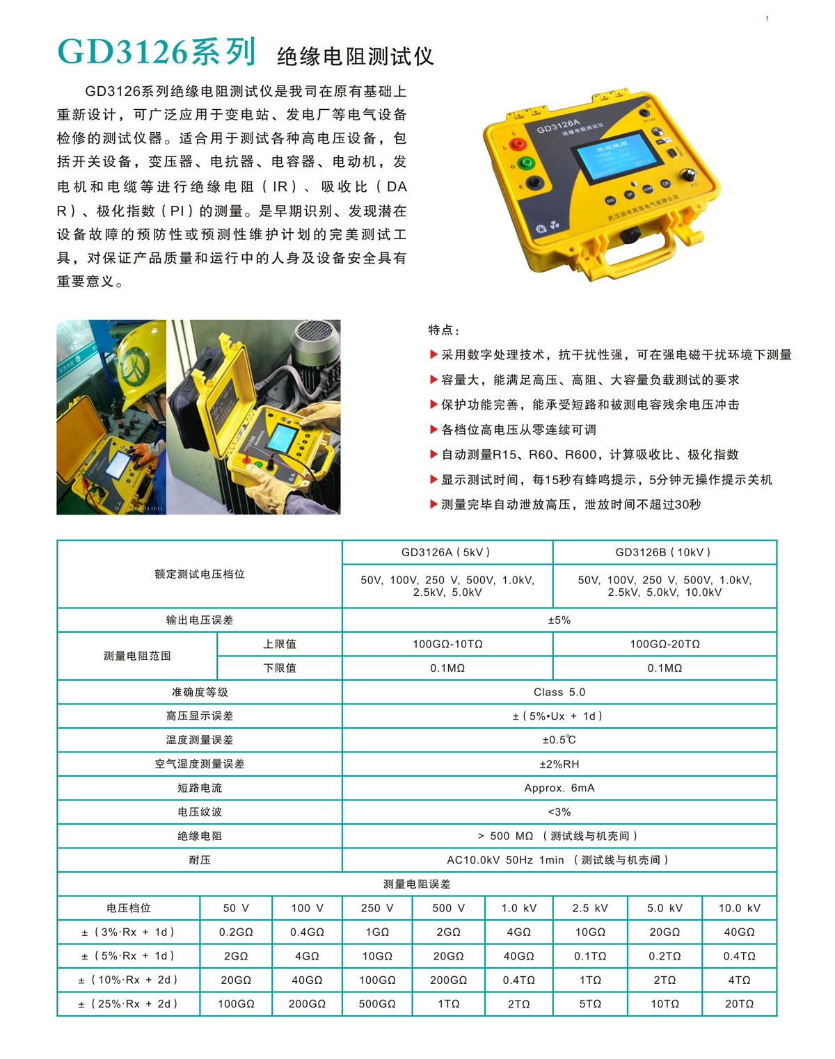 · 用于測(cè)試各種高電壓設(shè)備,包括開關(guān)設(shè)備,變壓器、電抗器、電容器、電動(dòng)機(jī),發(fā)電機(jī)和電纜等進(jìn)行絕緣電阻(IR)、吸收比(DAR)、極化指數(shù)(PI)的測(cè)量;