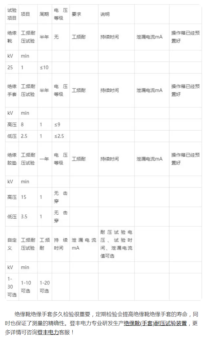 絕緣靴絕緣手套多久檢驗(yàn),接下來國電西高給出一個(gè)詳細(xì)的表格: