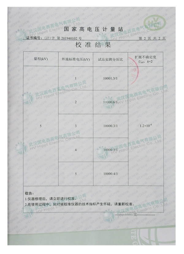 此次國家高電壓計量站動用精度為0.005%的標(biāo)準(zhǔn)電阻分壓器進行測量,測量結(jié)果該設(shè)備的精度達到0.02%,完全符合客戶要求。