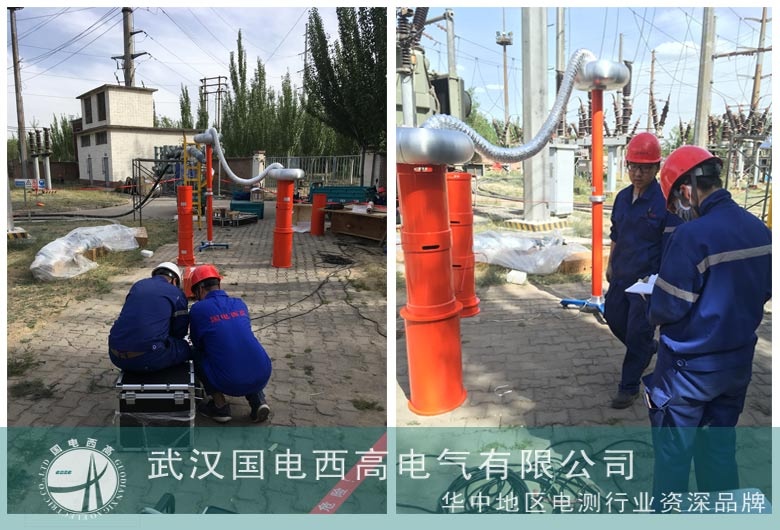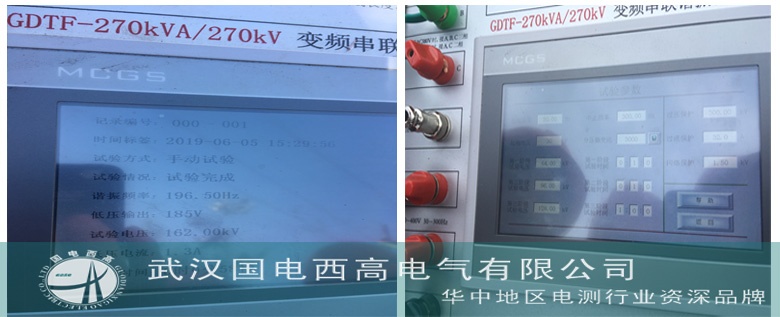 在給客戶(hù)講解完設(shè)備的理論知識(shí)后,我司技術(shù)工程師萬(wàn)工,對(duì)設(shè)備進(jìn)行了現(xiàn)場(chǎng)的檢查、組裝、接線(xiàn),一切就緒后,開(kāi)始對(duì)規(guī)格為64/110kV的電纜進(jìn)行耐壓試驗(yàn)。試驗(yàn)準(zhǔn)備開(kāi)始前,結(jié)合客戶(hù)以及預(yù)防性試驗(yàn)規(guī)程所提試驗(yàn)要求:試驗(yàn)電壓為兩倍的U0,試驗(yàn)時(shí)間為60分鐘,因此參數(shù)試驗(yàn)電壓選擇128kV,利用五節(jié)電抗器串聯(lián)的方式進(jìn)行試驗(yàn),試驗(yàn)結(jié)果符合標(biāo)準(zhǔn)。試驗(yàn)過(guò)程中演示了設(shè)備的參數(shù)設(shè)定、接線(xiàn)方式、注意事項(xiàng)等過(guò)程,直到客戶(hù)充分理解整套設(shè)備的使用。