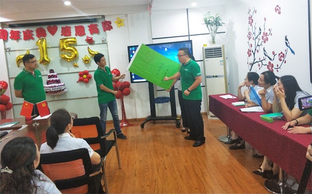 2019年9月29日,大家歡聚在一起共同慶祝公司成立15周年。此次周年慶活動(dòng)分為“歌唱祖國(guó)”和“回首往事”兩個(gè)環(huán)節(jié)進(jìn)行。“歌唱祖國(guó)”比賽主要考驗(yàn)大家的創(chuàng)新能力和組織能力,更重要的是在活動(dòng)過(guò)程中加強(qiáng)團(tuán)隊(duì)建設(shè),培養(yǎng)團(tuán)隊(duì)默契。